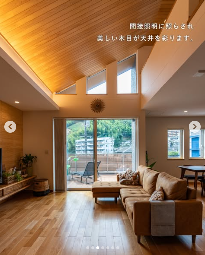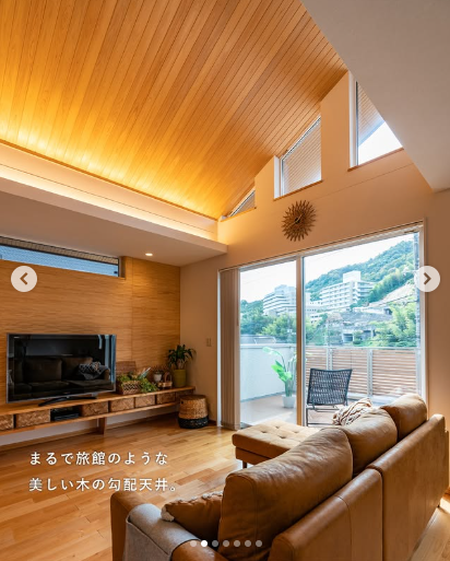 ダイナミックな木の勾配天井で