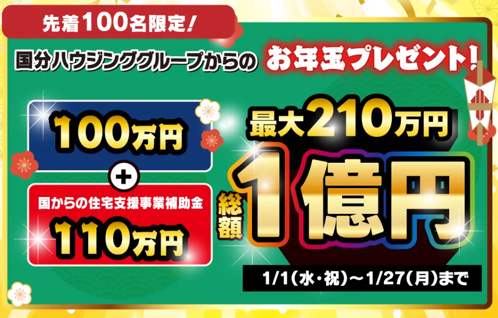 【2026新春】建築資金 総額1億円プレゼントキャンペーン!