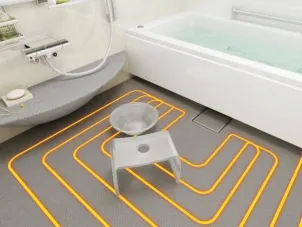お風呂の床や洗面所にも床暖房。 お湯につかる前でもブルっとしません!