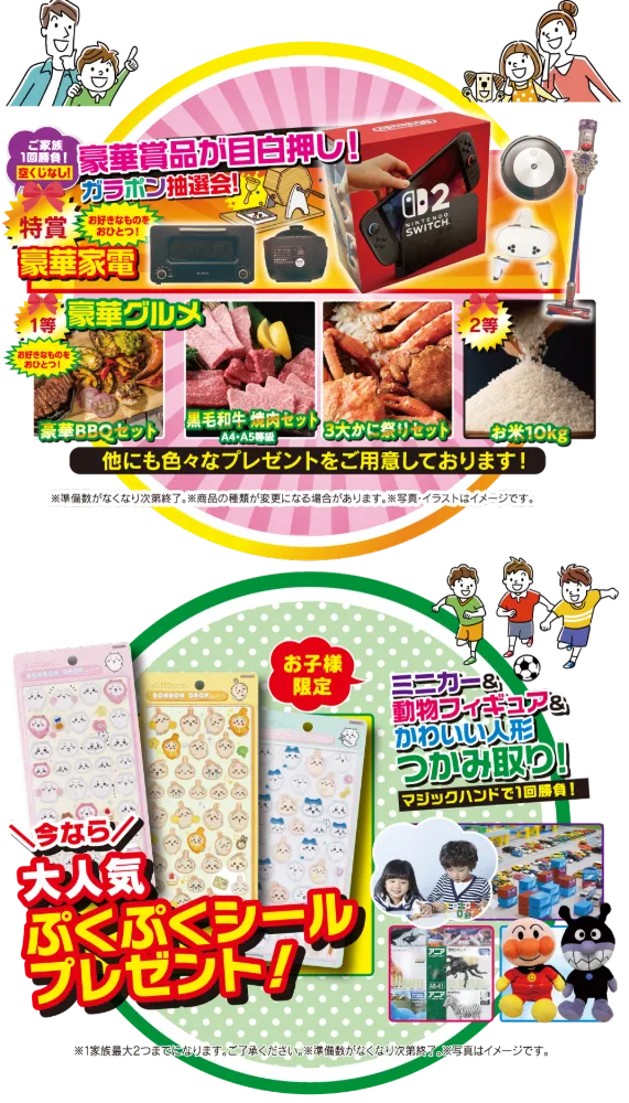 ガラポン抽選会※準備数がなくなり次第終了。商品の種類が変更になる場合があります。